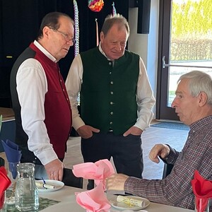 Der Höhepunkt des Nachmittags waren Mori Hans und Tschernko Karl. Die zwei Musikanten unterhielten die Feiernden mit ihrer Musik und Witz­ein­la­gen köstlich. Bei Krapfen, Strauben, Kaffee und Wein wurde viel geplaudert, gesungen und gelacht.