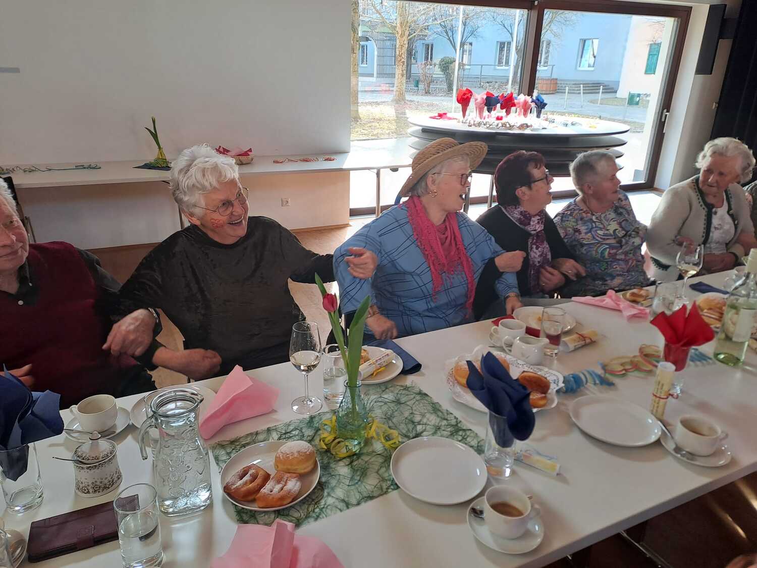 Die fleißigen Hände vom Pfarrgemeinderat und unserem Team des Be­geg­nungs­nach­mit­tags haben den Saal wunderbar geschmückt und ei­ni­ge haben Krapfen und Strauben für die Besucher gebacken.