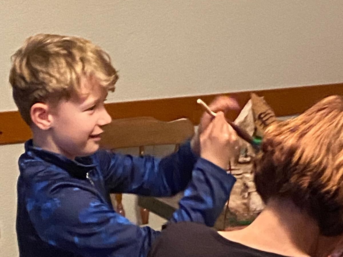 Um an einem Nachmittag schöne Krippenszenen entstehen zu lassen, war viel Vorarbeit nötig, die unser Krippenbaumeister mit Freude leis­tete. Die Kinder durften die vor­ge­fer­tig­ten Roh­linge eifrig be­pin­seln,  Palmen formen und die Krippen mit be­son­der­en Details be­kle­ben, und tauch­ten so einmal ganz anders in die Weih­nachts­zeit ein.