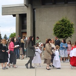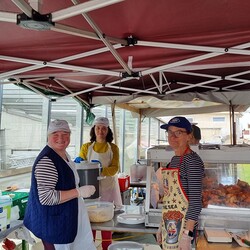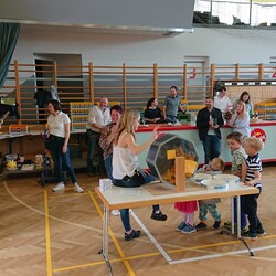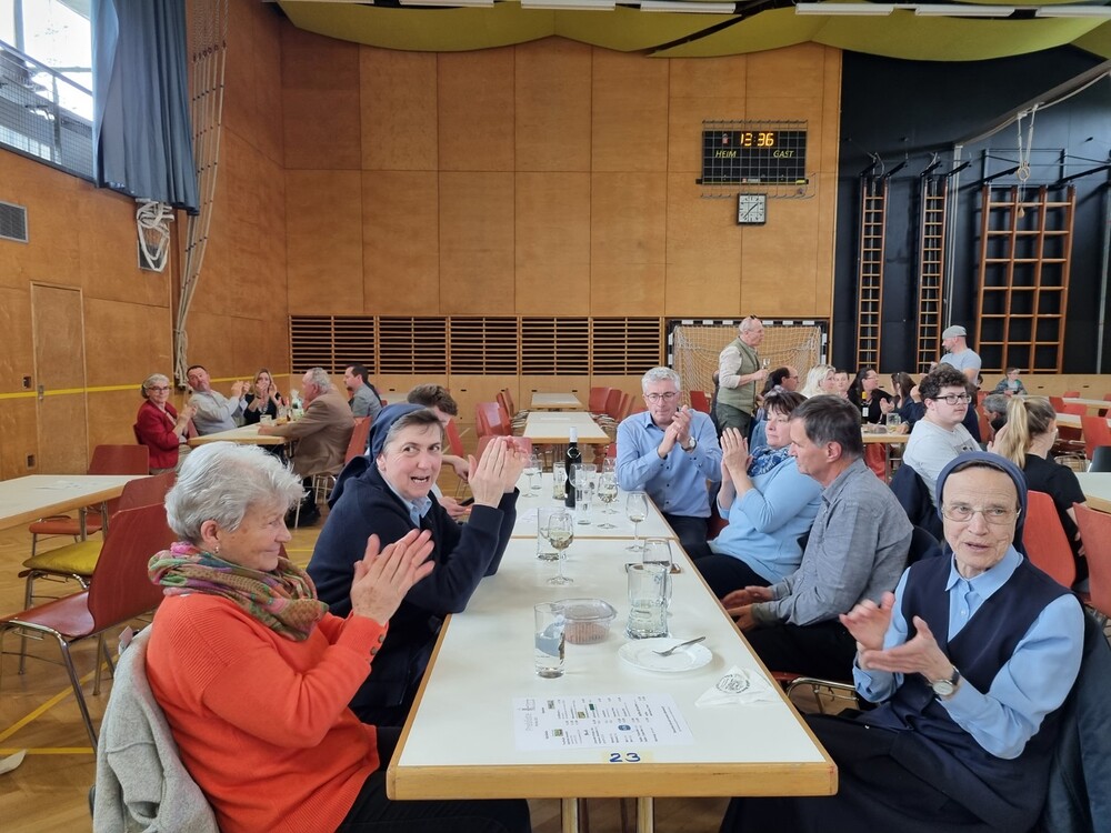 Nach der wunderschön gestalteten Erstkommunion zogen die Erstkommunionkinder in die Halle um beim Start des Pfarrfests dabei zu sein. Nachdem wir letztes Jahr richtiges Wetterglück hatten, mussten wir diesmal in die Veranstaltungshalle ausweichen. Dem Wetter zum Trotz war die Stimmung sehr gut. Das Kinderprogramm war gut besucht, viele Preise wurden verlost und natürlich gab es wieder genug zu essen und zu trinken. Obwohl diesmal besonders viele Torten gebacken wurden, waren am Schluss alle weg.