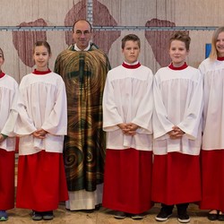 An diesem Tag durften wir auch wieder fünf schon etwas erfahrenere Ministranten als Hauptminis vorstellen. Nach ca. zwei Jahren fleißiger Mitarbeit im Gottesdienst haben sie sich alle Fähigkeiten zum selbstständigen Ministrieren in einer Messe angeeignet und können dadurch auch unsere jungen Neueinsteiger führen und unterstützen. Wir gratulieren
