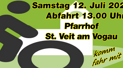 Wir fahren von St. Veit nach Kühnegg. Dort gibt es eine Andacht im Garten vom Hrn. Pfarrer. Danach fahren wir zur Einkehr beim Buschenschank Kummer in Perbersdorf b. St. Peter und wieder gemütlich zurück nach St.Veit.