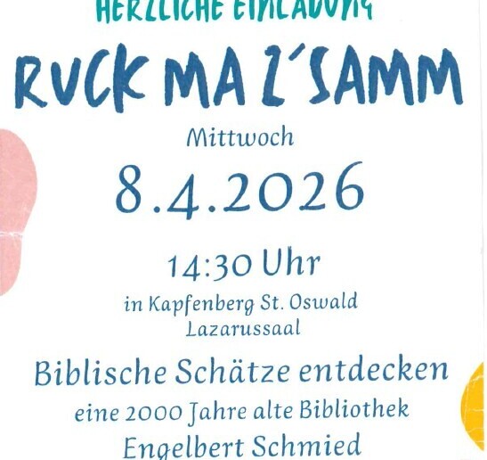 am Mittwoch, den 8. April, um 14:30 Uhr im Lazarus-Saal in St. Oswald ein.